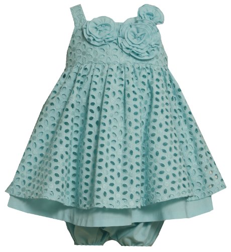 OrderNow Bonnie Baby Girls Infant Empire Waist Eyelet Dress, Aqua, 12 Months